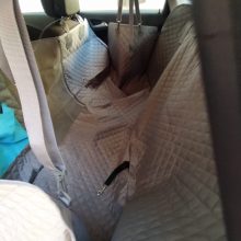 Our Dog Seat Cover helps you keep your backseats covered with this snap-and-go seat cover that protects your vehicle from dog hair, scratches, and drool.